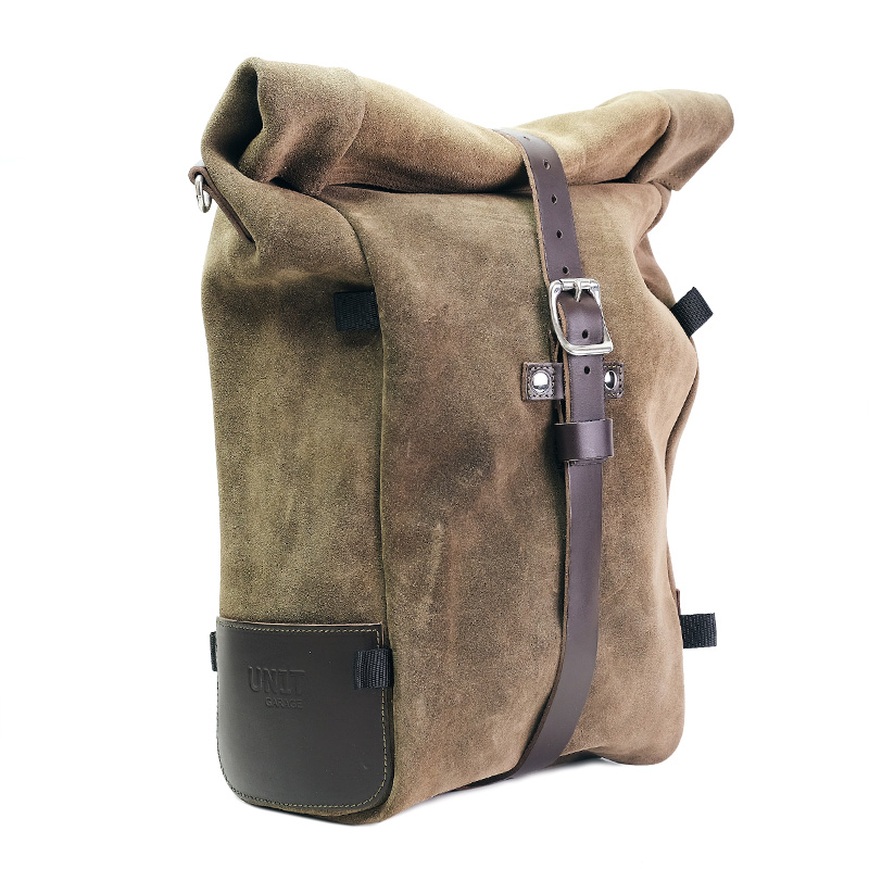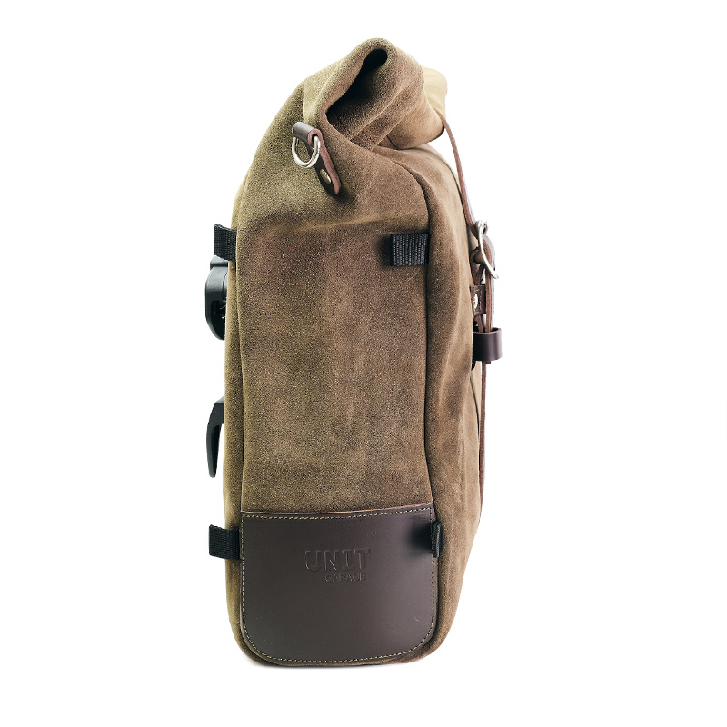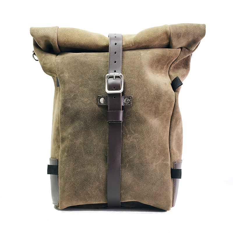 Pure 侧包,容量可从 10 升扩展至 14 升,由意大利工匠手工制作,采用顶级优质蜡涂层粗面皮革。