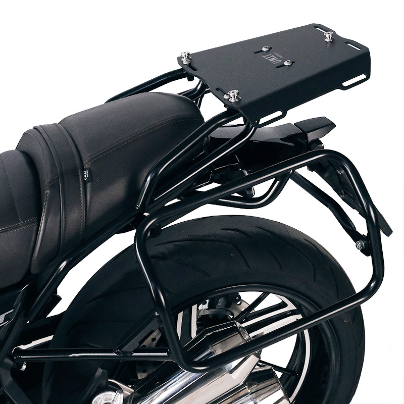 如果您想带着您的 BMW R12 NineT 带着硬顶箱或大量行李旅行,这款车顶行李架就是您的最佳选择!它完善了后部,并为乘客配备了舒适的手柄。坚固实用,可使用提供的 4 个固定件容纳铝制顶壳的代码板:U108 和代码板:AL3。提供高强度哑光黑色环氧粉末饰面。也非常适合用软袋提供更多的装载表面。