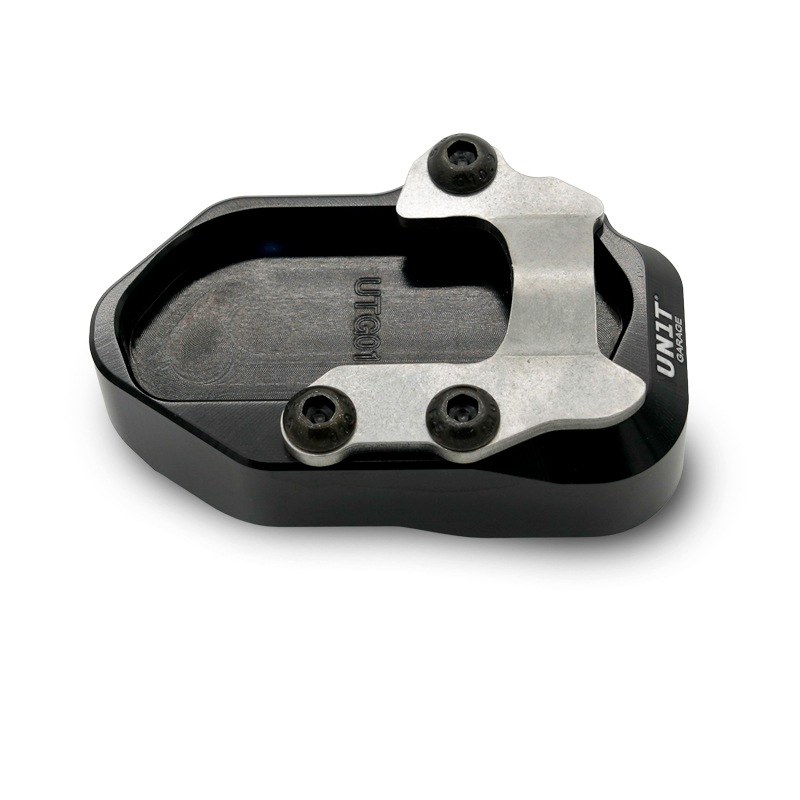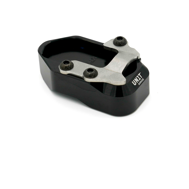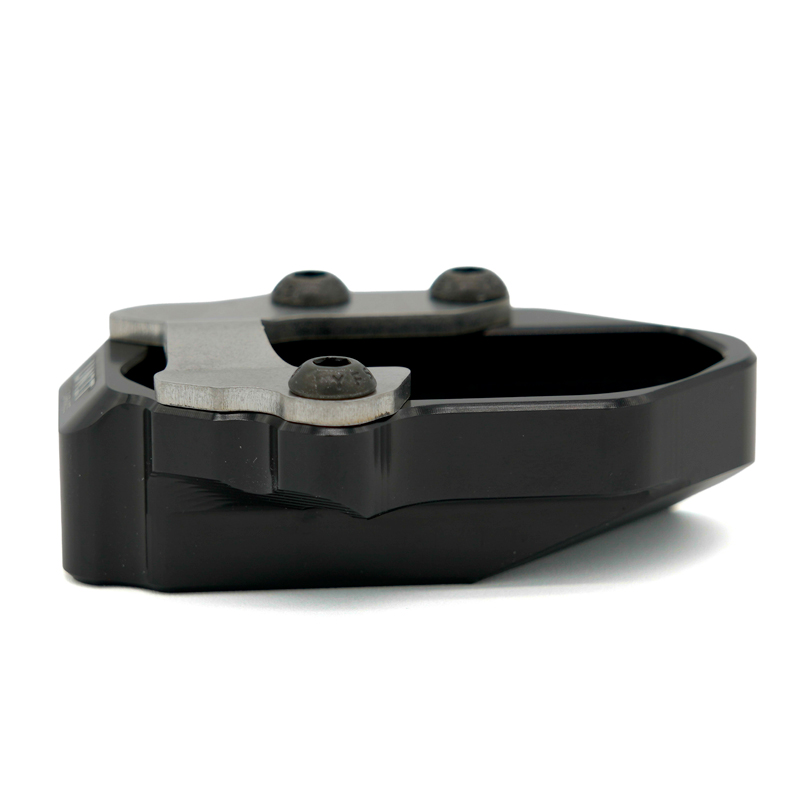 原装支架的支撑面较为单薄。这款铝合金板材可在松软地面或滚烫的沥青路面上提供稳固的支撑。表面经防锈黑色阳极氧化处理,并带有雕刻和标识。安装简便,只需几分钟即可完成。