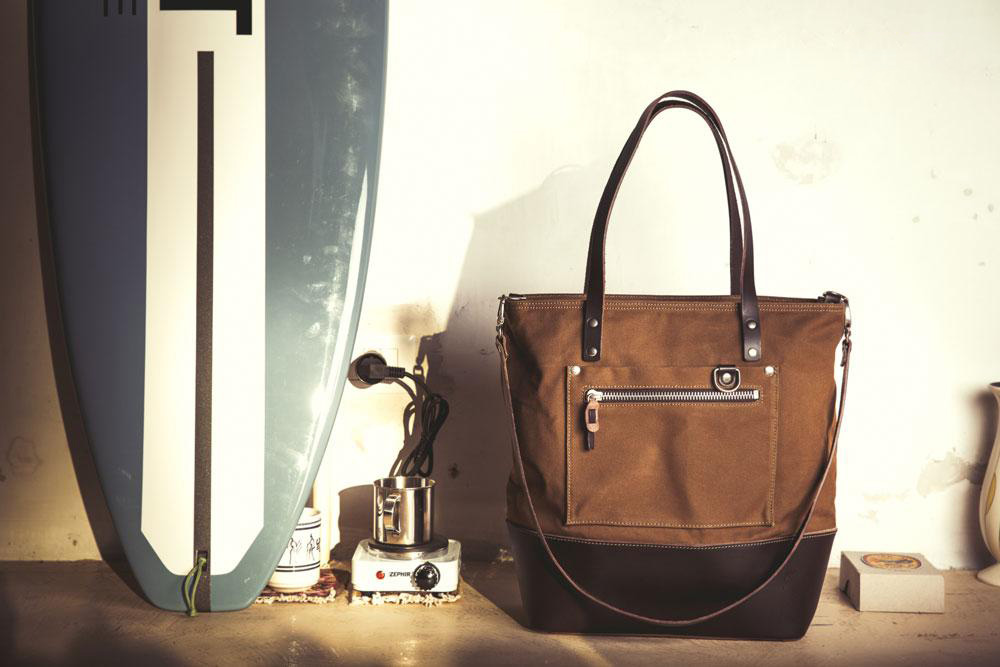 米色帆布配棕色皮革滚边