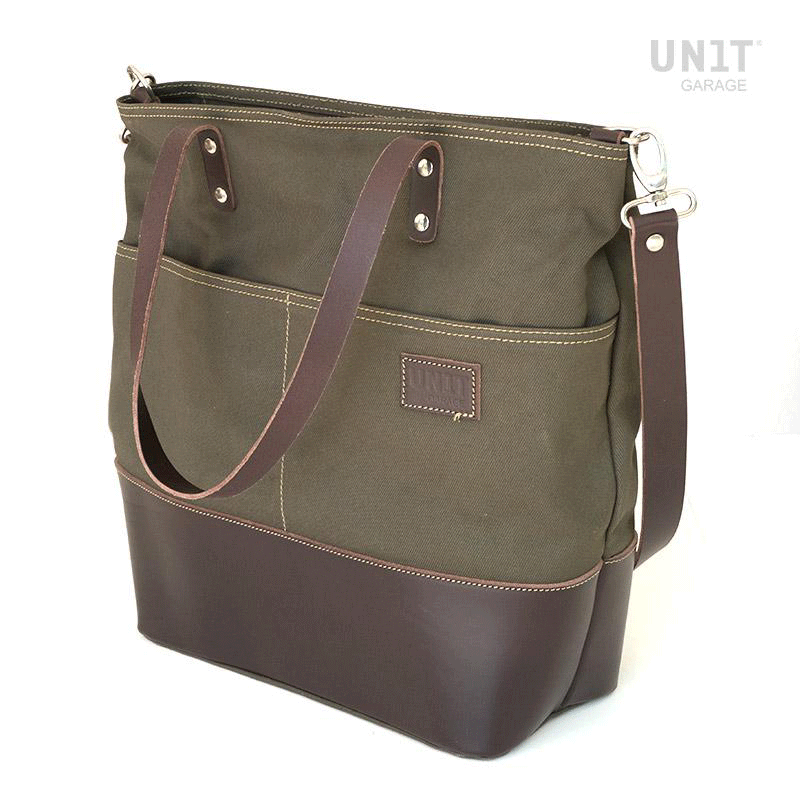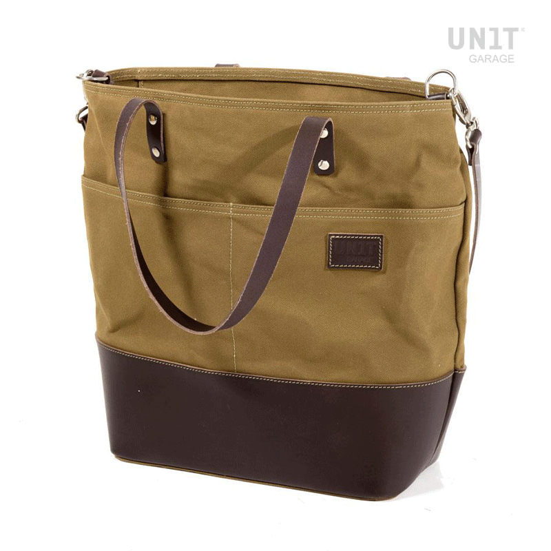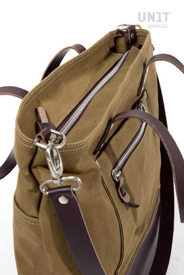意大利坚固耐用的优质防水棉布制成的手袋;用蜡处理,使其防水。