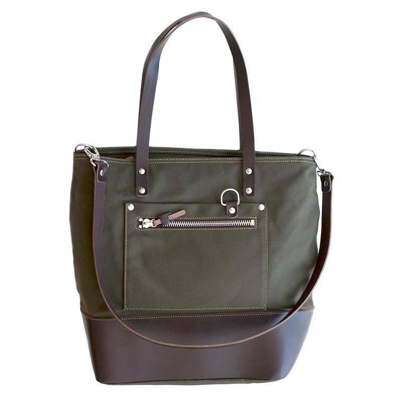 绿色帆布配棕色皮革饰边
