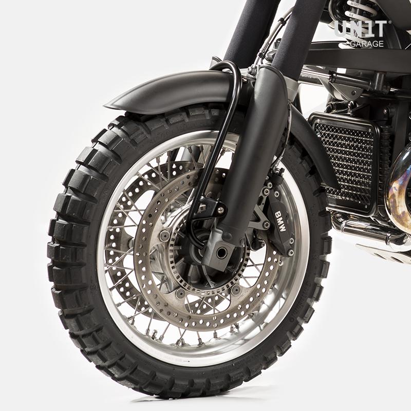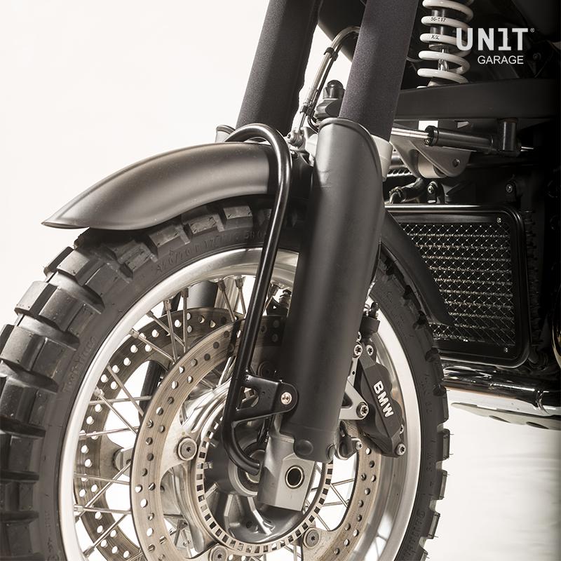 坚固的塑料和涂漆防护装置采用亚光黑色和透明饰面,可保护前轮自行车上的前叉保护罩。