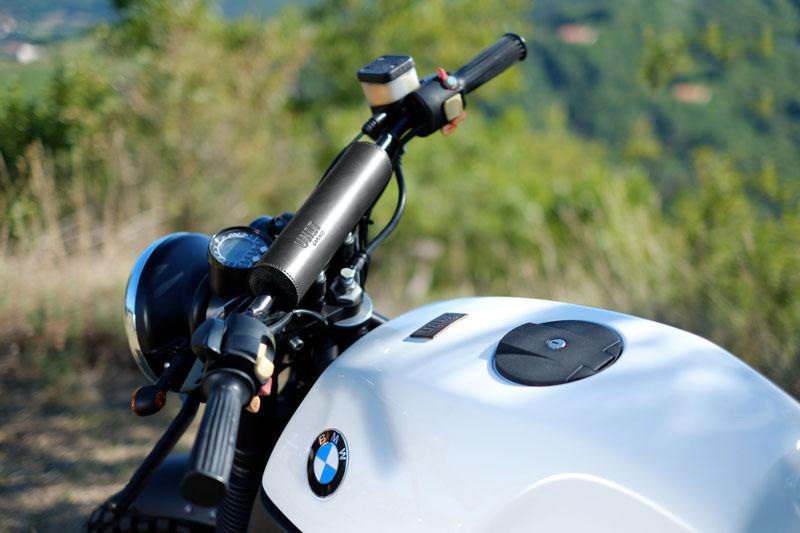 保险杠由黑色皮革制成,可轻松安装在任何车把横档上,并在坠落时保护脸部。