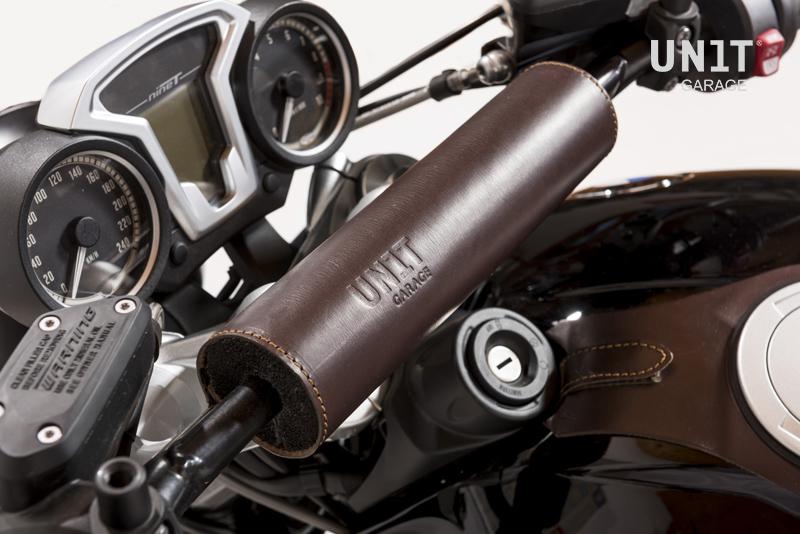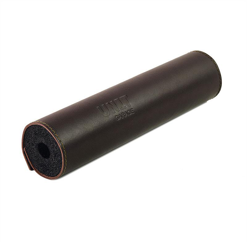 保险杠由棕色皮革制成,可轻松安装在任何车把横杆上,并在跌落时保护脸部。