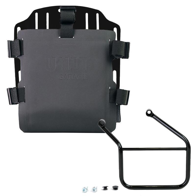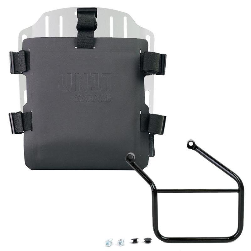 板,其配备有用于锁定到框架本身的锁。该板在摩托车侧面形成平坦的安装表面,这将允许运输没有附件或其他物体的袋子,例如睡袋、夹克等。前翻盖注重细节,采用 Hypalon 饰面,可使用随附的滑块进行调节,并可从板上快速拆卸。