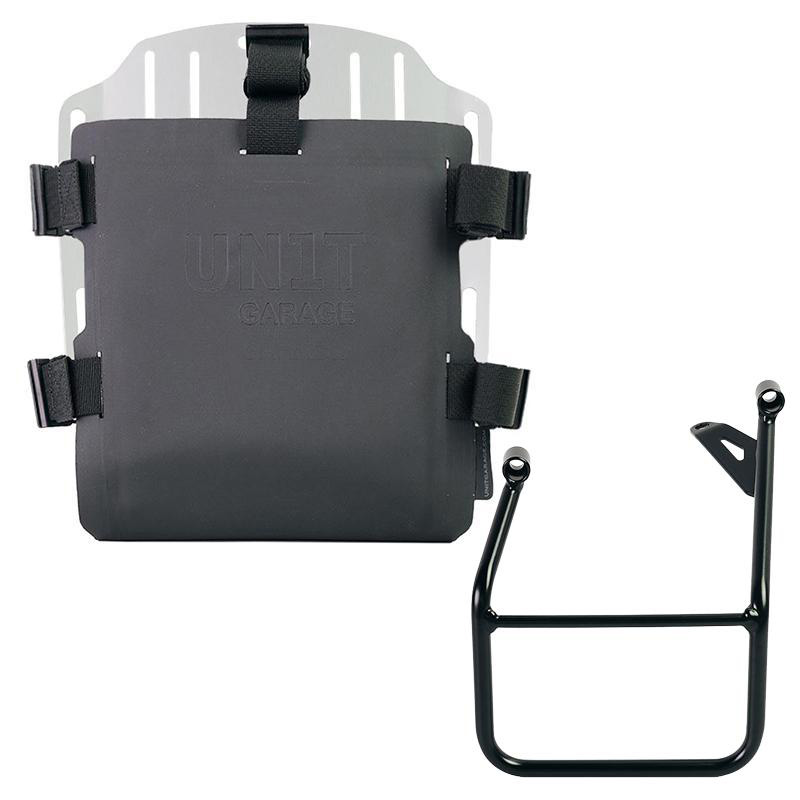 板,其配备有用于锁定到框架本身的锁。该板在摩托车侧面形成平坦的安装表面,这将允许运输没有附件或其他物体的袋子,例如睡袋、夹克等。前翻盖注重最小的细节,采用海帕伦 (Hypalon) 饰面,可使用随附的滑块进行调节,并可从板上快速拆卸。