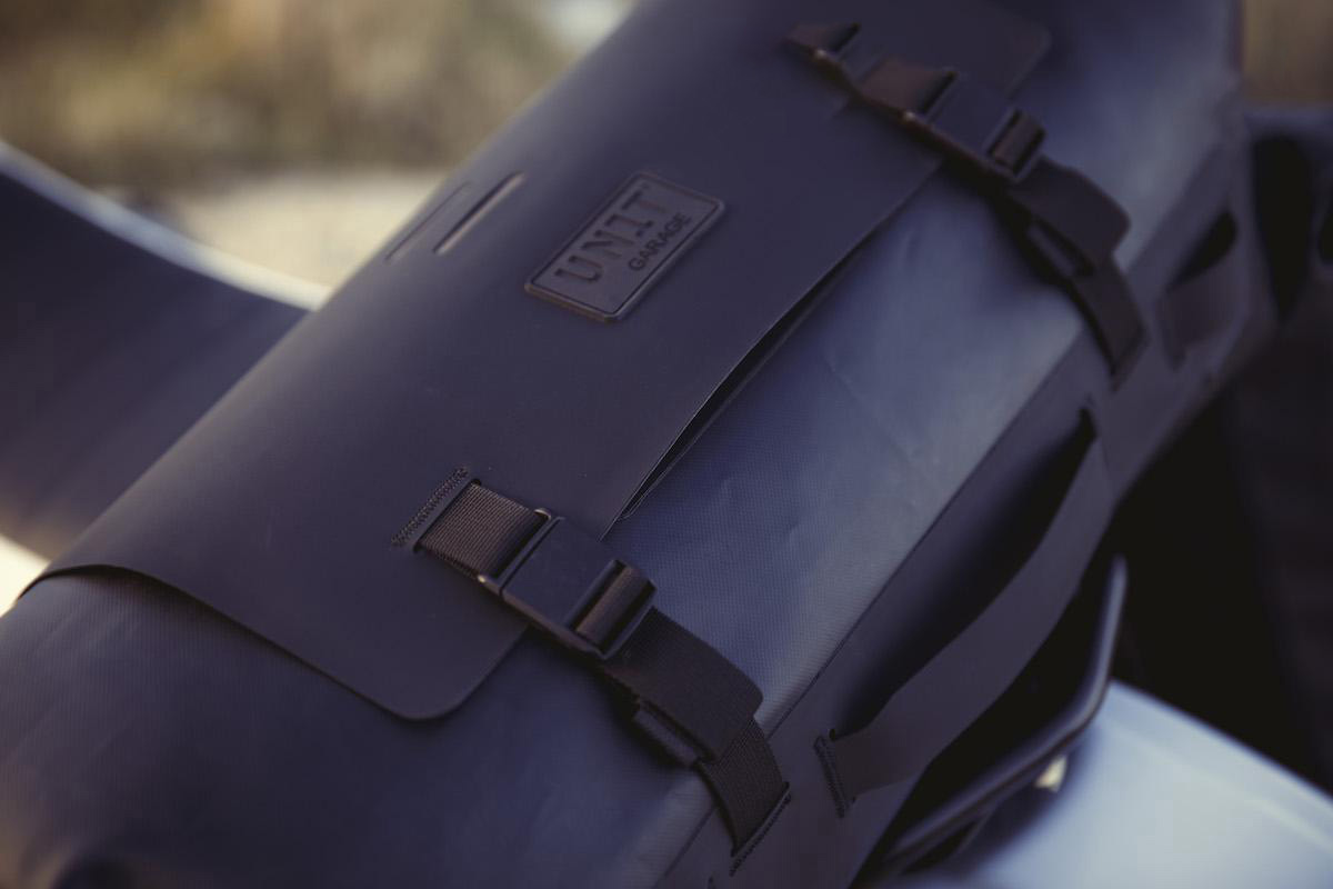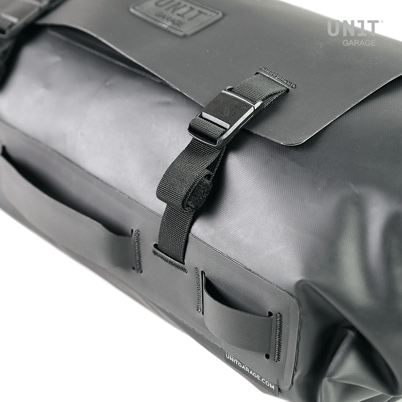 双开口使进出方便,并且在固定在自行车上时对称。上翻板内侧有两个松紧带,还有一个防滑袋,可以在停下时快速存放其他行李或夹克。
