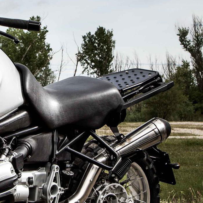 坚固的行李架由钢管和铝板制成,带防滑凸台;采用亚光黑色高强度粉末涂料处理。
