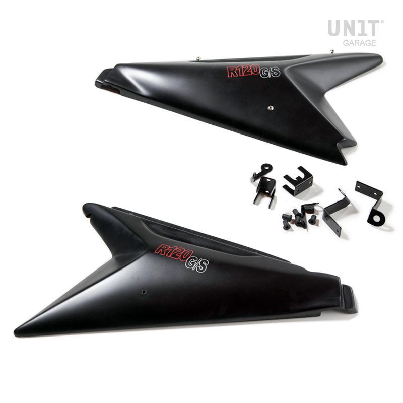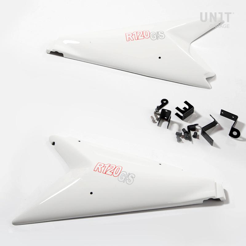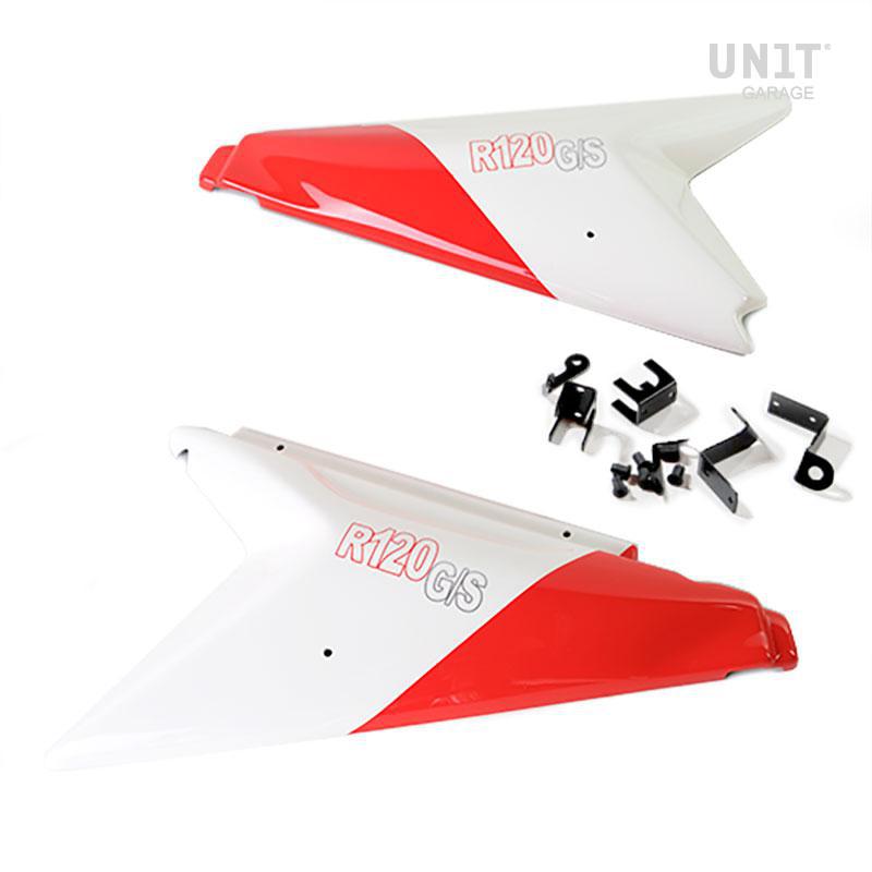 该套件提供两种颜色的侧面板。一对非常轻的侧面板,带有R120 G / S贴纸,MATT黑色,ALPINEWHITE,红色和透明涂层。它们带有附件,橡胶和螺丝,安装时无需对自行车进行任何改动。为了不损坏框架的涂漆,提供了透明的粘合塑料。它们旨在容纳ADV袋架和我们最初的Vario塑料袋支架。
