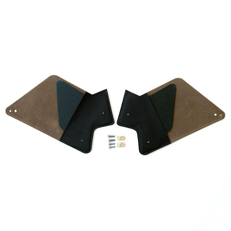由打蜡皮革制成的侧面分为塑料插件,配有螺丝和固定夹。