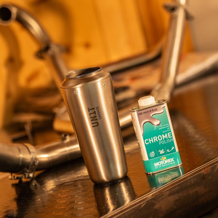 Motorex 镀铬抛光剂可为镀铬、钢和铝表面带来镜面般的光泽。该产品可清洁、抛光并保护表面。例如,它可以清洁摩托车排气系统中烧焦的橡胶。清洁后的表面会形成一层非常薄、无形、闪亮的保护膜,防止腐蚀。