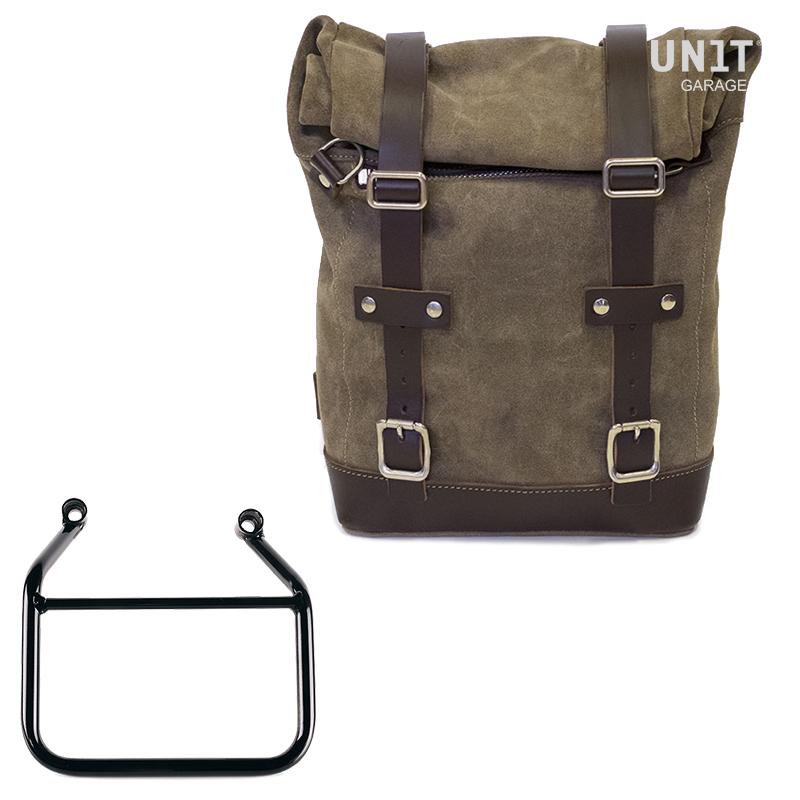 经过蜡处理,使其防水。 3 毫米皮革饰面注重最小的细节,简单而纯粹,就像其制造材料一样。它可以快速连接到我们的包架框架上,包背面配有快速释放系统,该系统配有用于锁定的锁。它可以容纳一台 15 英寸笔记本电脑,并配有一个大拉链口袋,可存放手机和文件。