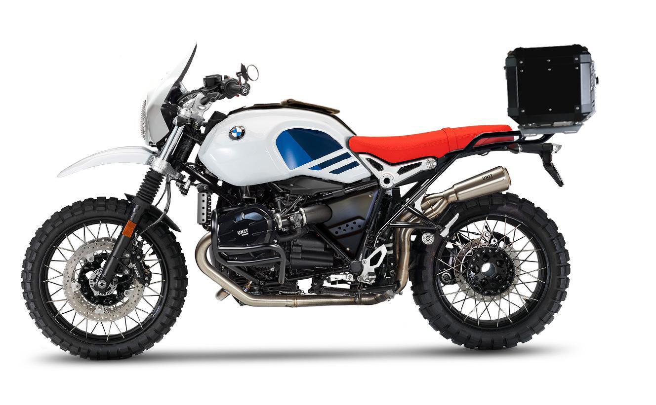 注意:这种类型的包不符合 IP67 标准,建议在内部使用防水容器来保护您的行李。 尺寸:高度毫米310,宽度毫米400深度毫米320 容积:1×36L 重量:6.5公斤 加固行李架,带不锈钢管顶箱挂钩 如果您想带着 NineT 旅行并携带坚固的顶箱或沉重的行李,那么这款车顶行李架就是您的最佳选择! 完善后部并为乘客配备舒适的把手。坚固实用,可容纳铝制顶壳。提供银色饰面或经过高强度哑光黑色粉末涂料处理。也非常适合使用软袋提供更多装载空间。
