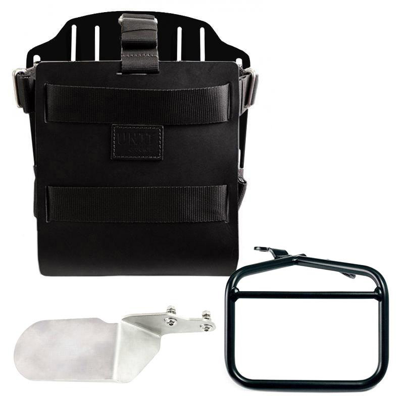 ,快速释放系统代码 U000 已经包含并安装在板的背面,板的背面配有用于锁定框架本身的锁。该板在自行车的侧面形成了一个平坦的安装表面,这将允许运输未连接的袋子或其他物体,例如睡袋、夹克等。前翻盖采用 3 毫米皮革饰面,注重最小细节,可使用随附的滑块进行调整,并可快速从板上取下。