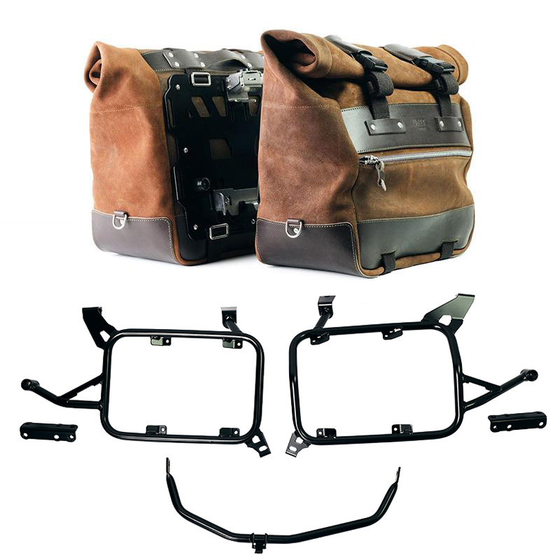 一对 Cult 侧袋,采用剖层皮革制成,40L - 50L + 铝板 + 铝制马鞍架,适用于 BMW F850GS 和 ADV