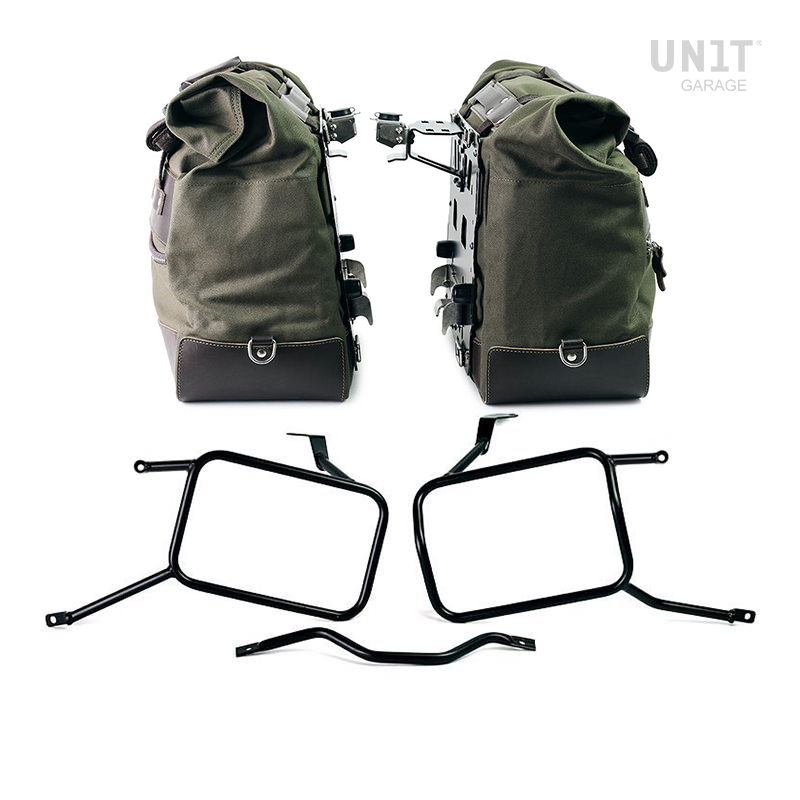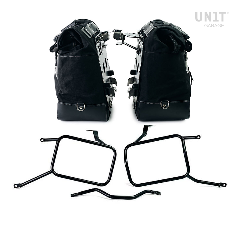 一对 Cult 帆布 40L - 50L 侧袋 + 一对铝板 + Triumph Street Scrambler 框架,适用于 Atlas 铝制驮包