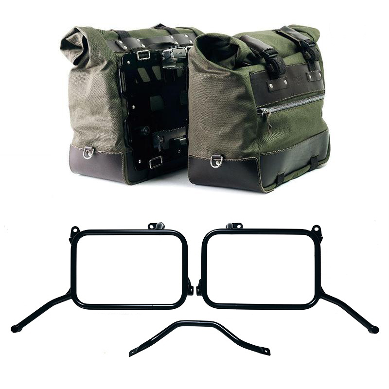 一对 Cult Canvas 40L - 50L 侧袋 + 一对铝板 + Royal Enfield Himalayan 450 原装排气管框架(2024 年起)