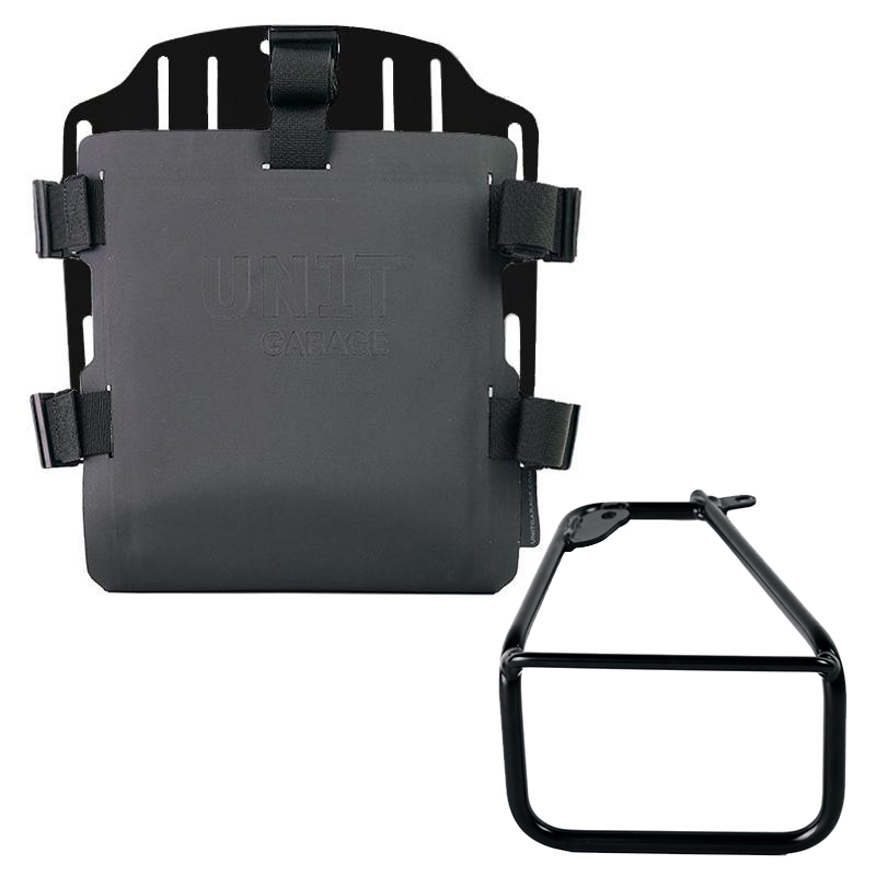 板,其配备有用于锁定到框架本身的锁。该板在摩托车侧面形成平坦的安装表面,这将允许运输没有附件或其他物体的袋子,例如睡袋、夹克等。前翻盖注重最小的细节,采用海帕伦 (Hypalon) 饰面,可使用随附的滑块进行调节,并可从板上快速拆卸。