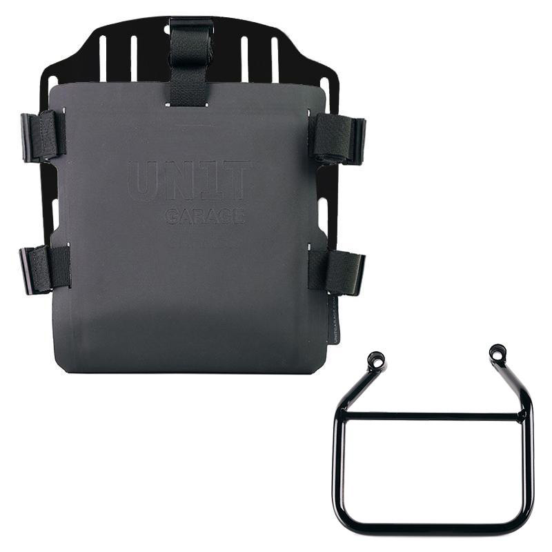 板,其配备有用于锁定到框架本身的锁。该板在摩托车侧面形成平坦的安装表面,这将允许运输没有附件或其他物体的袋子,例如睡袋、夹克等。前翻盖注重最小的细节,采用海帕伦 (Hypalon) 饰面,可使用随附的滑块进行调节,并可从板上快速拆卸。