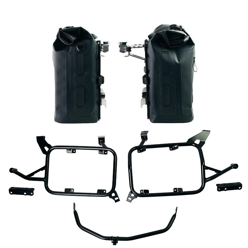 一对 100% 防水 Khali 侧袋,配有铝制背板 + 不锈钢快速释放和锁