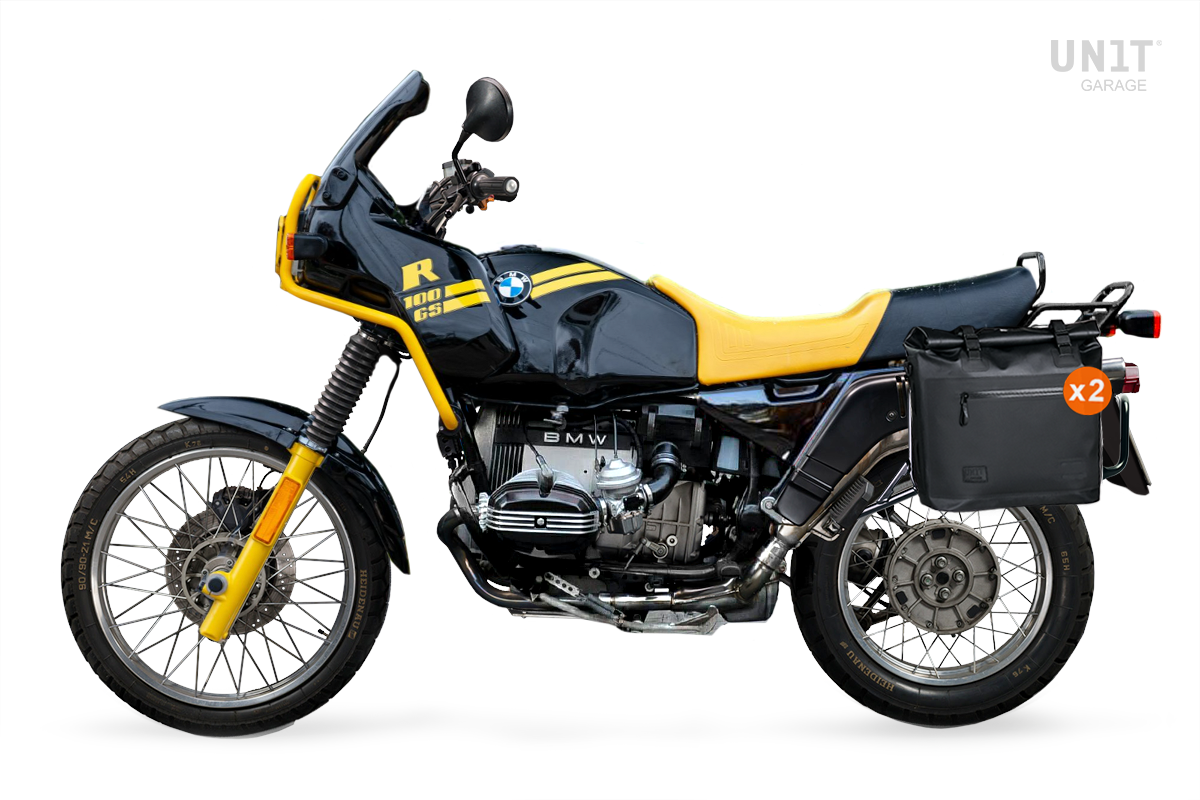 一对 100% 防水 Khali 侧袋,配有铝制背板 + 不锈钢快速释放和锁