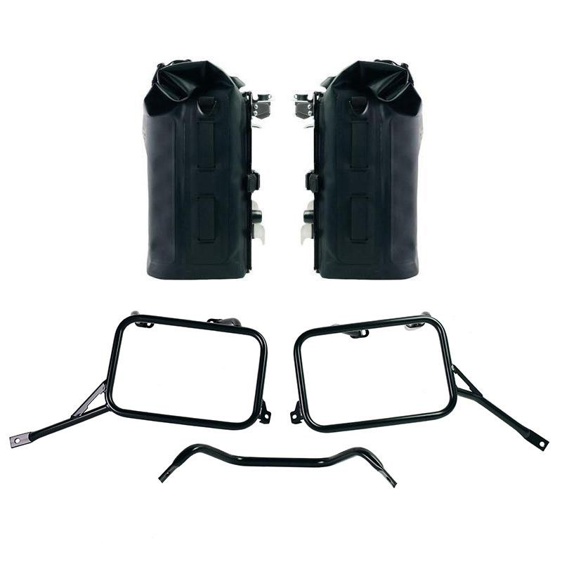 一对 100% 防水 Khali 侧袋,配有铝制背板 + 不锈钢快速释放和锁
