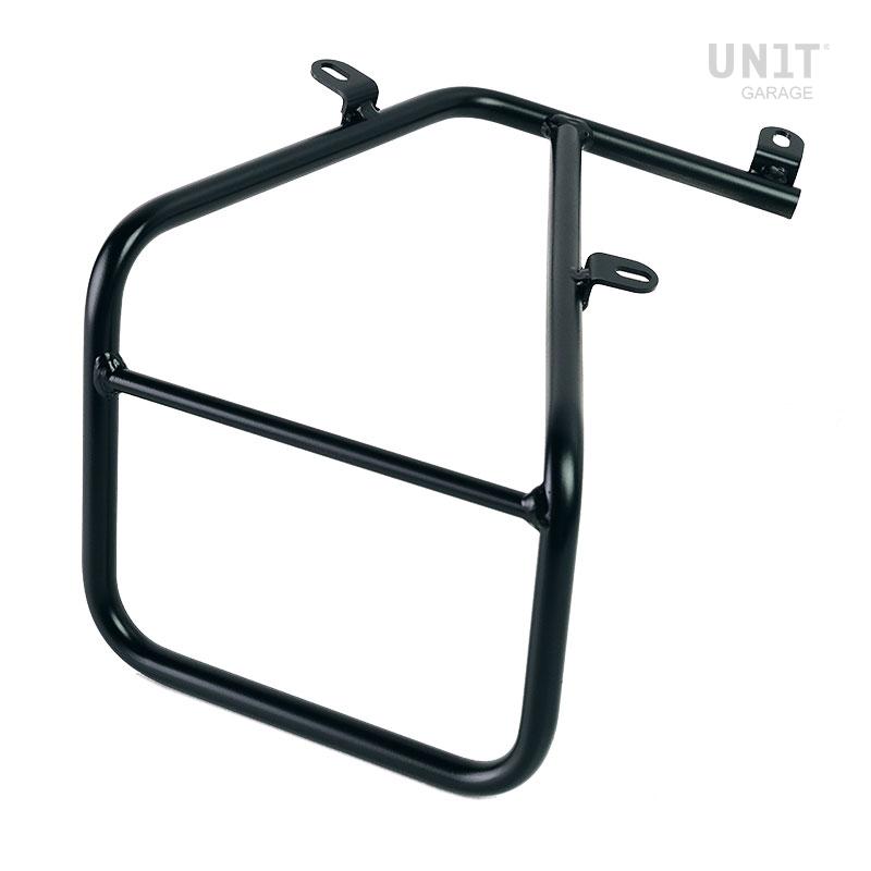 框架由钢制成,经过哑光黑色表面处理,带有偶发性粉末。它安装在自行车的右侧。专为我们的 Sportail 套件设计,可与自行车的其他部分完美集成。即使袋子未安装,也准备好容纳我们快速、美观和最小的连接系统。它配有螺丝,包可以舒适地与乘客一起使用。