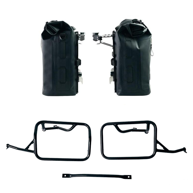 一对 100% 防水 Khali 侧袋,配有铝制背板 + 不锈钢快速释放和锁