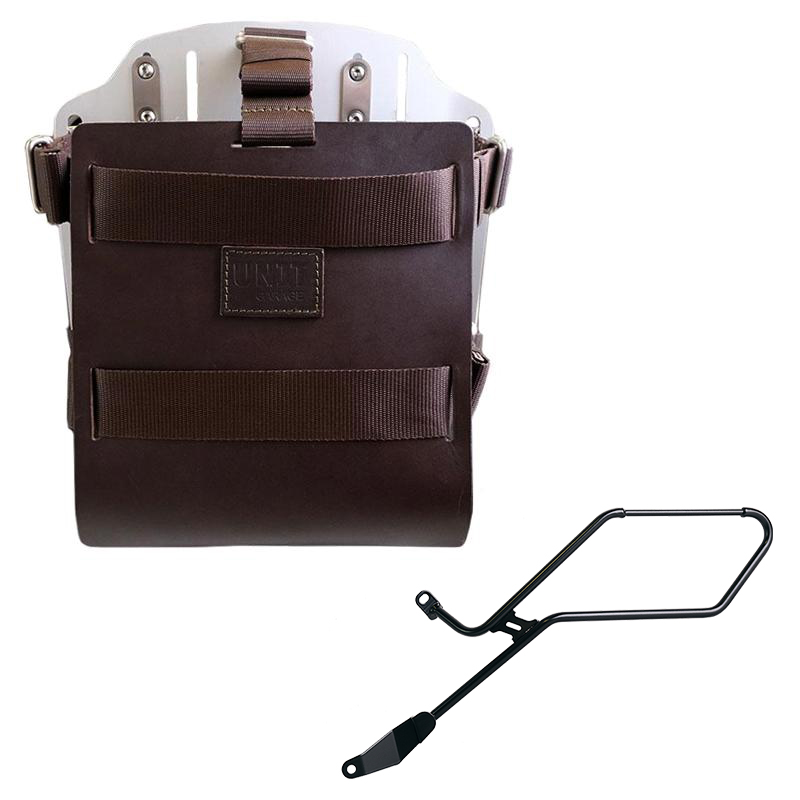 铝制袋架,带可调节皮革前部和快速接头 + Triumph Bonneville Bobber 左车架