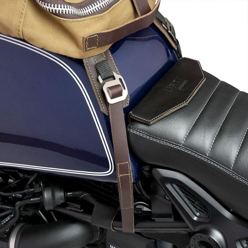 3 毫米皮革饰面注重最小的细节,简单而纯粹,就像其制造材料一样。它与随附的带子相连,从摩托车上取下后就变成了背包。它可容纳一台 15 英寸笔记本电脑,并配有一个大拉链口袋,可存放手机和文件。