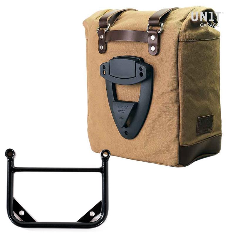 设计用途广泛,可安装在任何特殊或量产自行车上,这要归功于 4 个固定点,您可以轻松地将连接支架用螺栓固定到自行车上(不包括在内)。即使没有安装袋子,也准备好容纳我们快速、美观和最小的连接系统。