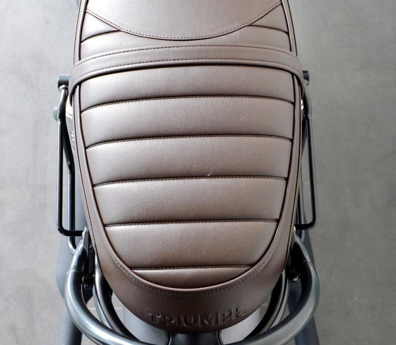 在 Triumph 车架上设计,它与自行车的其他部分完美结合。即使没有安装袋子,也准备好容纳我们快速、美观和最小的附件系统。它可以与船上的乘客一起舒适地使用。