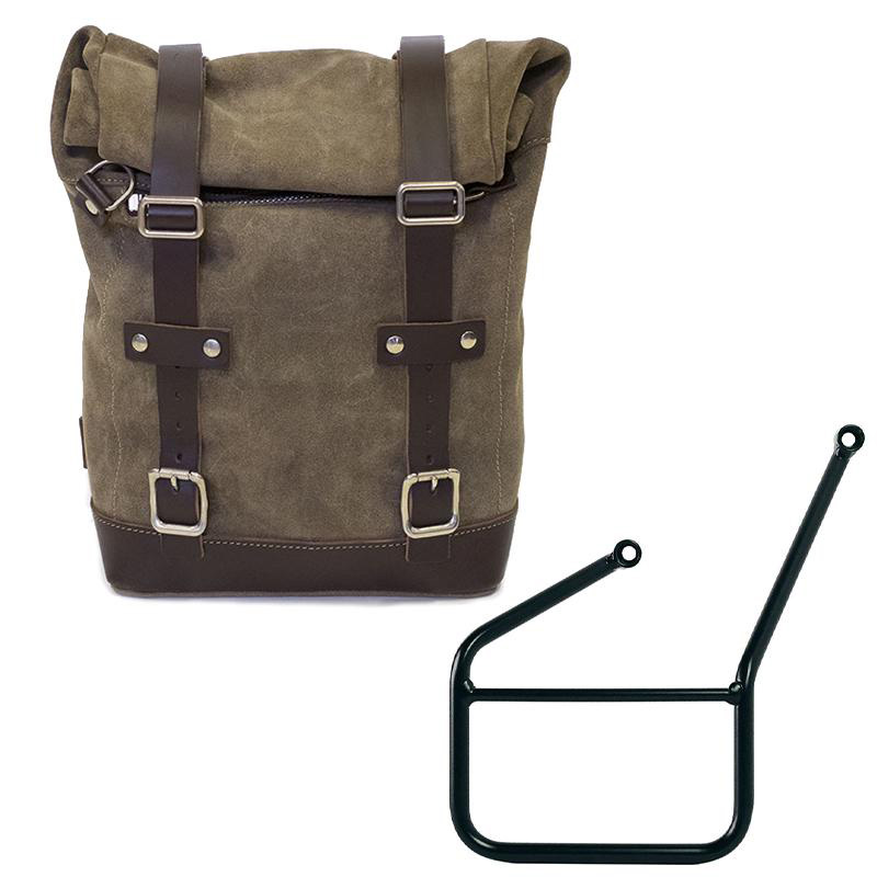 用蜡处理,使其防水。注重最小的细节,采用 3 毫米皮革饰面,简单而纯粹,就像它所用的材料一样。它可以快速连接到我们的包架框架,快速释放系统应用于包的背面,包的背面配有锁定锁。它可以包含一个 15 英寸的笔记本电脑,它配备了一个大的拉链口袋,用于存放电话和文件。