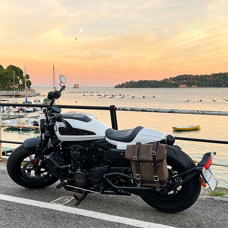 在 Sportster S 1250 车架上设计,它与自行车的其他部分完美集成。即使没有安装袋子,也准备好容纳我们快速、美观和最小的附件系统。它可以与船上的乘客一起舒适地使用。