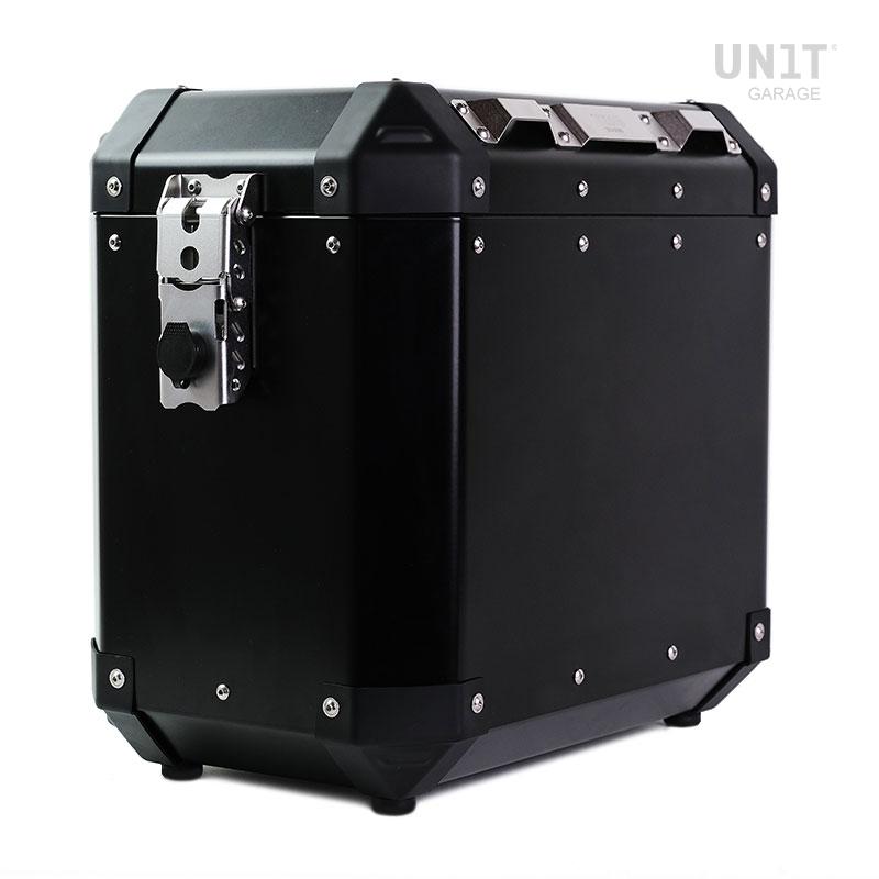 我们想要优雅、经典和坚固的包,带有漂亮的钢铰链和细致的细节:为冒险而设计的细节和抵抗所有条件的细节。它们固定在任何圆管框架上,位于袋子背面的安全挂钩系统上,封口自动加宽,便于从袋子框架上组装和拆卸,内部杠杆由优质铝合金 CNC 加工而成。盖子是完全可拆卸的,可以从两侧打开,内部配有固定装置,包括一根松紧带,可用作手套、文件和小物件的支撑。盖子约束是皮革制成的,带有可释放的按扣。除了提供的挂锁外,封盖的设计还可以容纳一个额外的挂锁。包身全衬有坚固的 2.5 毫米氯丁橡胶,能够吸收冲击。铰链、锁和所有细节均采用电抛光不锈钢制成,这是您在市场上任何类似产品中都找不到的。拐角采用坚固的 ABS 材料,可以在跌倒时更换以及每个组件。我们的 Alu 包完全是在意大利制造的,由一个个手工组装而成。