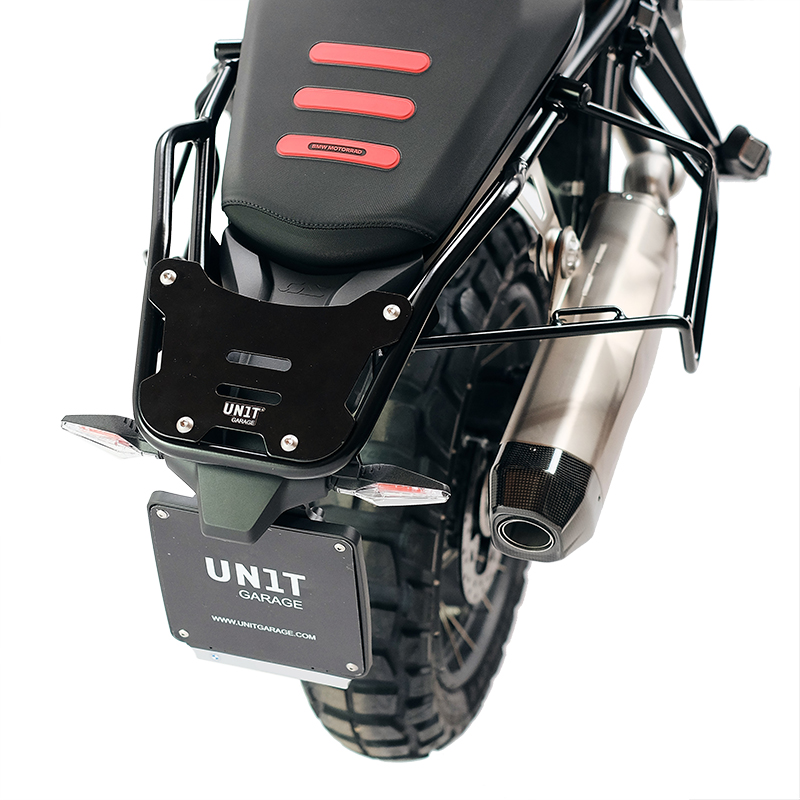 基于 BMW F900GS 车架设计,它与自行车的其余部分完美结合。准备好适应我们的快速连接系统,即使没有安装包,也美观而简约。它可以在有乘客的情况下舒适地使用,并且与我们的行李架兼容。