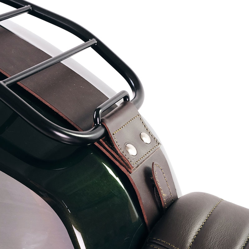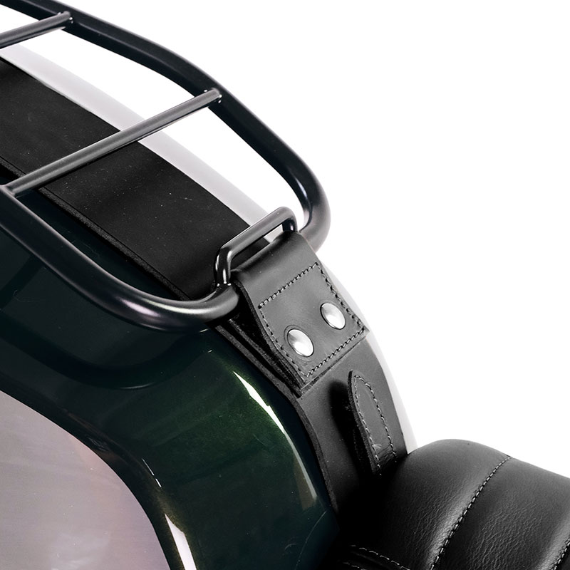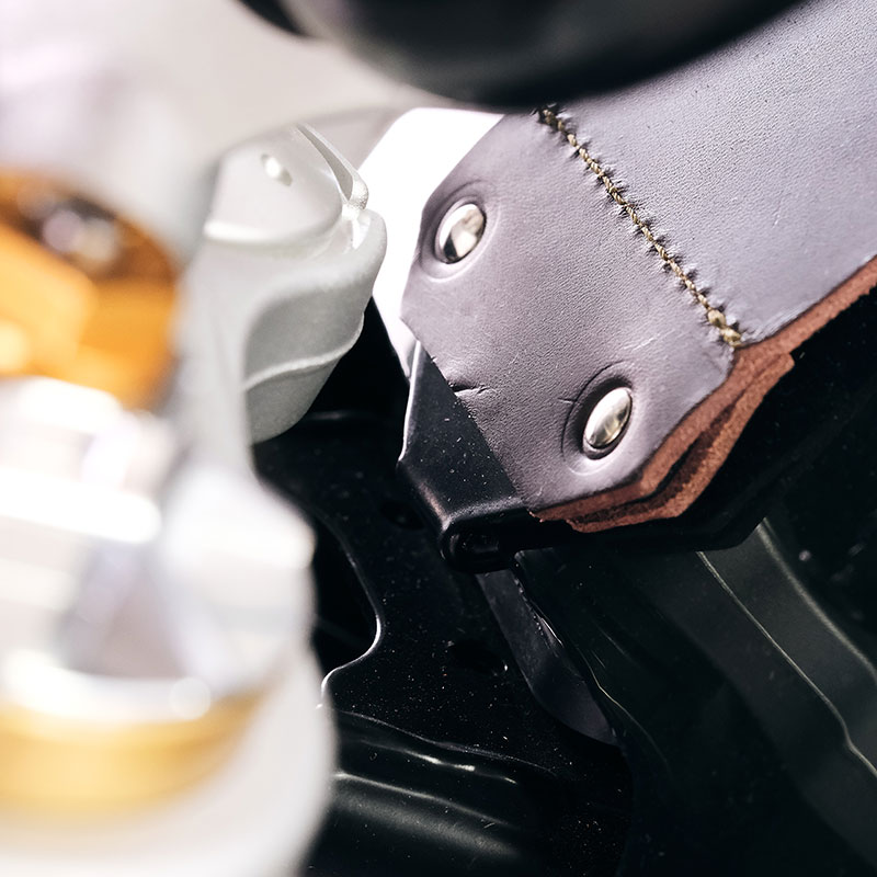 铝垫片可升起油箱盖,因此除了将皮革带固定在正确的位置(见图)之外,如果没有摩托车钥匙,任何人都无法将其取下。