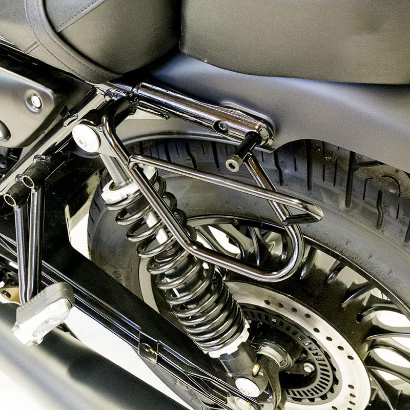 Guzzi V9 SX镜框由钢制成,并经环氧粉末亚光黑色处理。