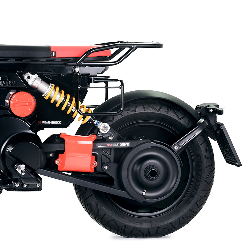 它专为 BMW CE 02 车架设计,可与自行车其他部件无缝集成。可轻松安装我们的快拆系统,即使未安装包袋,也同样美观简约。即使载有乘客,也能舒适地使用。