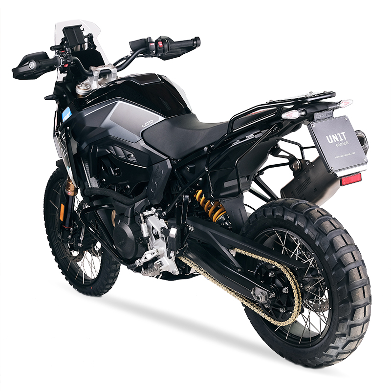 基于 BMW F900GS 车架设计,它与自行车的其余部分完美结合。准备好适应我们的快速连接系统,即使没有安装包,也美观而简约。它可以在有乘客的情况下舒适地使用,并且与我们的行李架兼容。