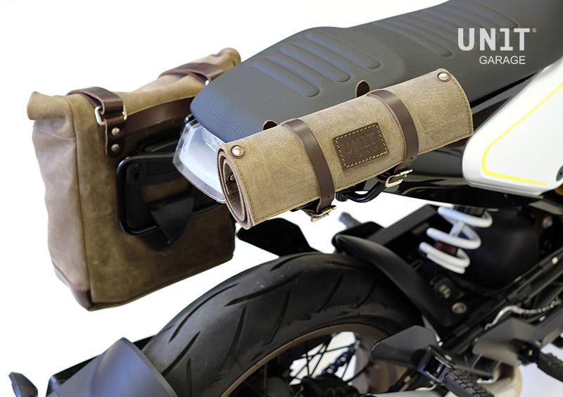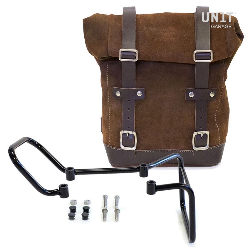 用蜡处理,使其防水。注意3毫米皮革饰面的最小细节,简单而纯净,就像其制成的材料一样。它通过已经包含并安装在袋子背面的快速释放系统,快速连接到我们的袋子框架上,该系统配有用于锁定的锁。它的内部可以容纳一个15英寸的笔记本电脑,并配有一个用于存放电话和文件的大拉链口袋。