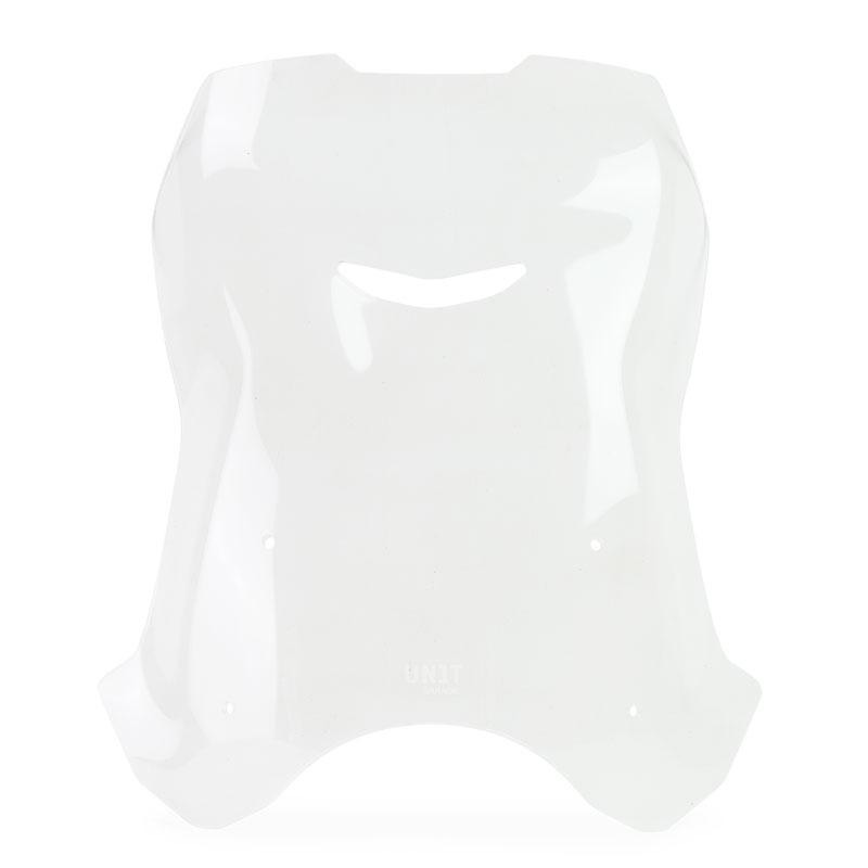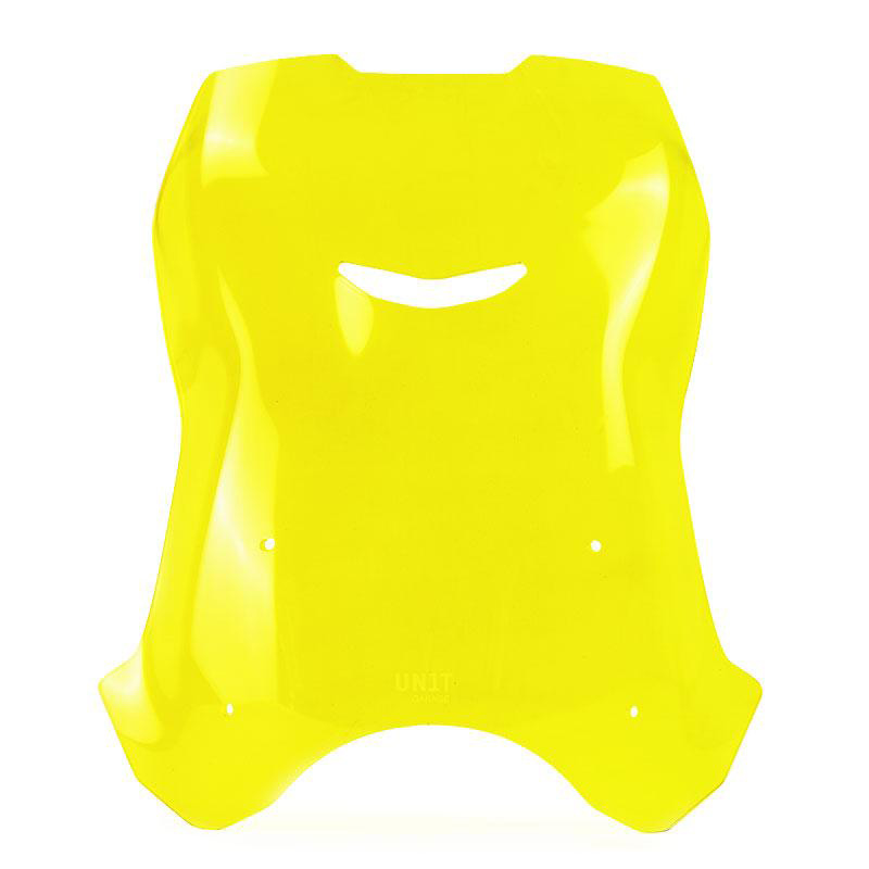 如果您已经购买了我们的透明、烟色或黄色屏幕之一,并支持圆形车头灯的 GPS,那么这是较大的版本。您可以将其安装在已有的 GPS 装置车库支架上。由 4 毫米厚的 PMMA(丙烯酸)制成。在这个更大的版本中,我们进一步实施了空气动力保护。前通风口消除了湍流,上部更宽,更具保护性。