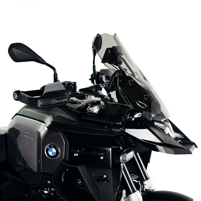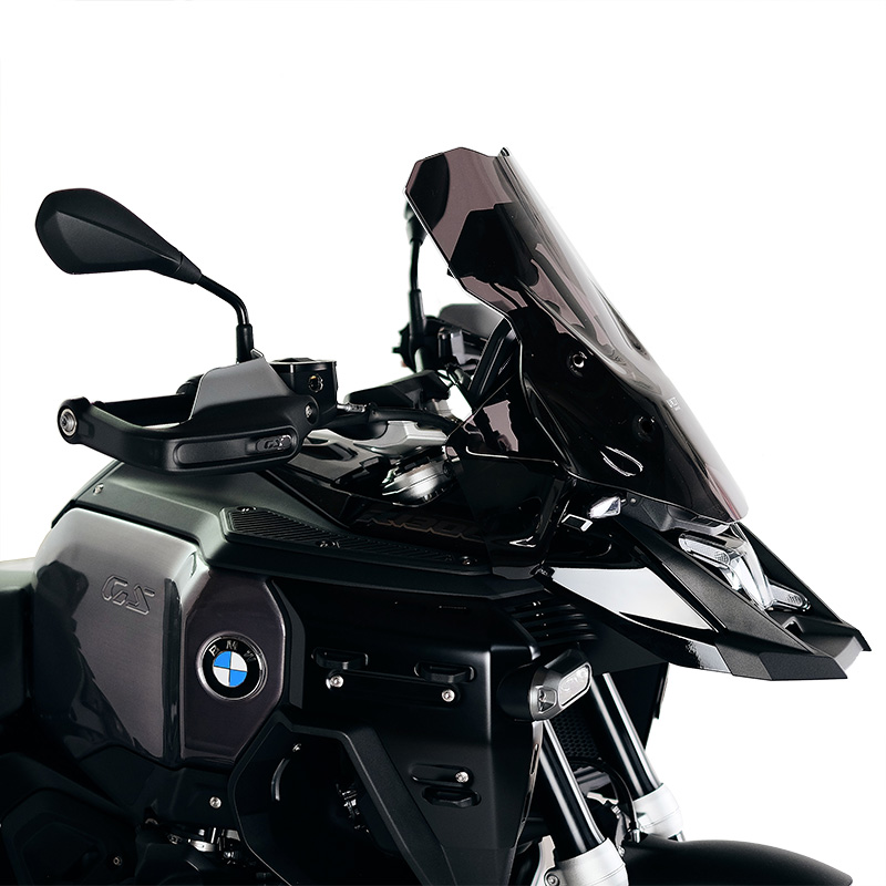 挡风玻璃的设计无需任何修改,只需重复使用原来的支架和螺丝即可安装。 挡风玻璃是绝对个人的附加物,我们将其设计成不同的形状、尺寸和透明度,以适应不同的高度和期望。挡风玻璃(您可以在照片中找到总尺寸和与原装挡风玻璃的差异)可以像原装挡风玻璃一样在两个位置进行调整,并为各种高度提供最佳保护,消除恼人的湍流,您的 GS ADV 将变得更加符合人体工程学!