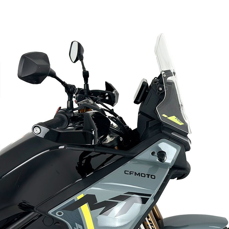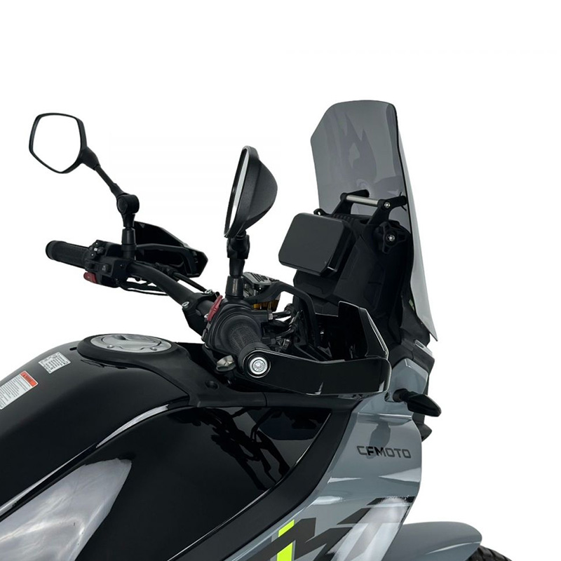 挡风玻璃采用高品质 PMMA 有机玻璃制成,经过 DOT626 认证,厚度为 3 毫米。 遵循最严格的安全标准并尊重专业知识,保证最大程度的抵抗力和透明度。经过详细研究的设计与摩托车的线条完美契合,使其外观更加迷人。