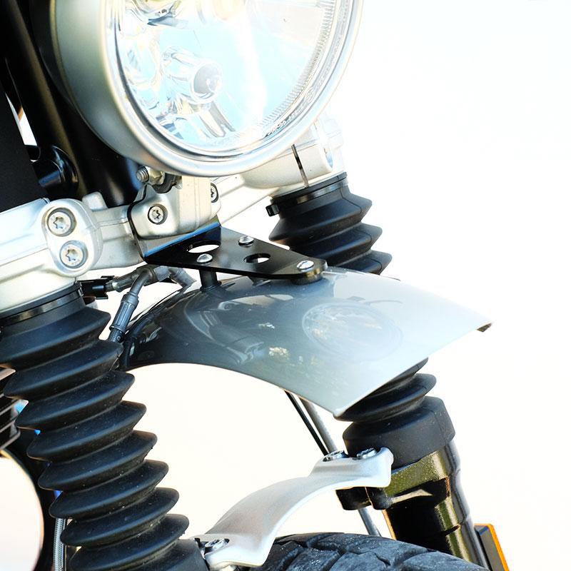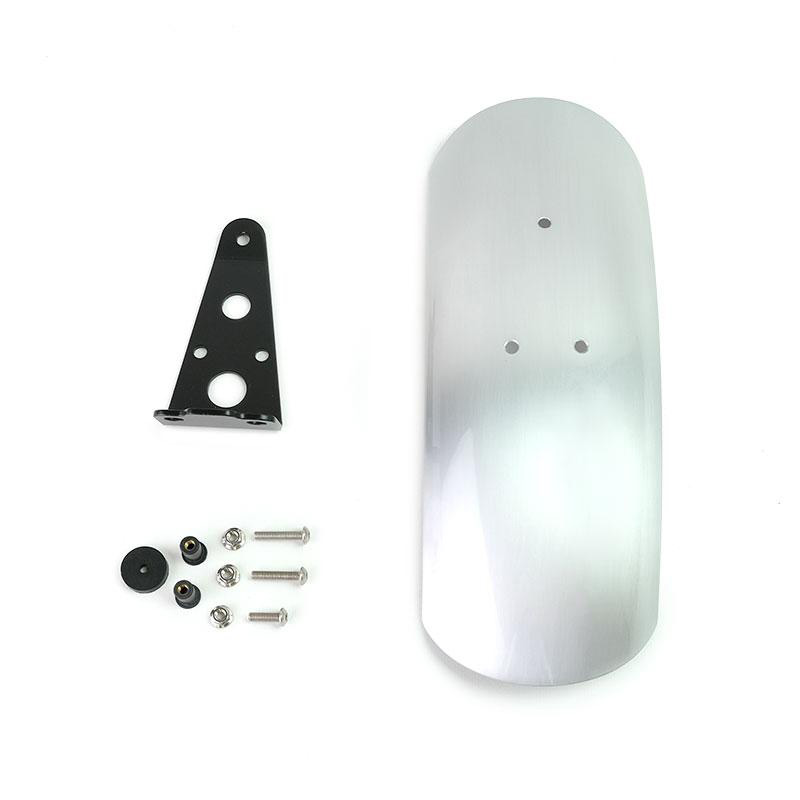 它取代了整个原来的前挡泥板,具有完美的“老派”风格。它配备了一个钢支架,用于固定到前灯支架上,并采用哑光黑色环氧粉末表面处理。配有带透明油漆的缎面铝制前挡泥板。