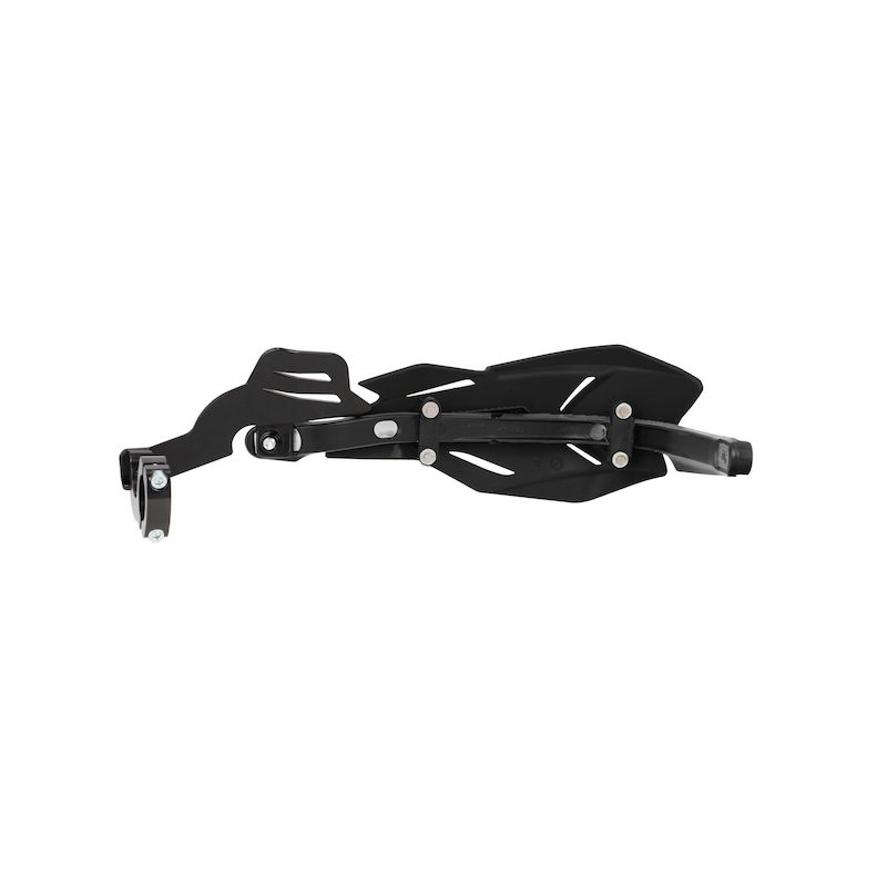 护手带有包覆成型的钢条和防腐蚀手镯,用于将护手固定在车把上,并配有专用支架。