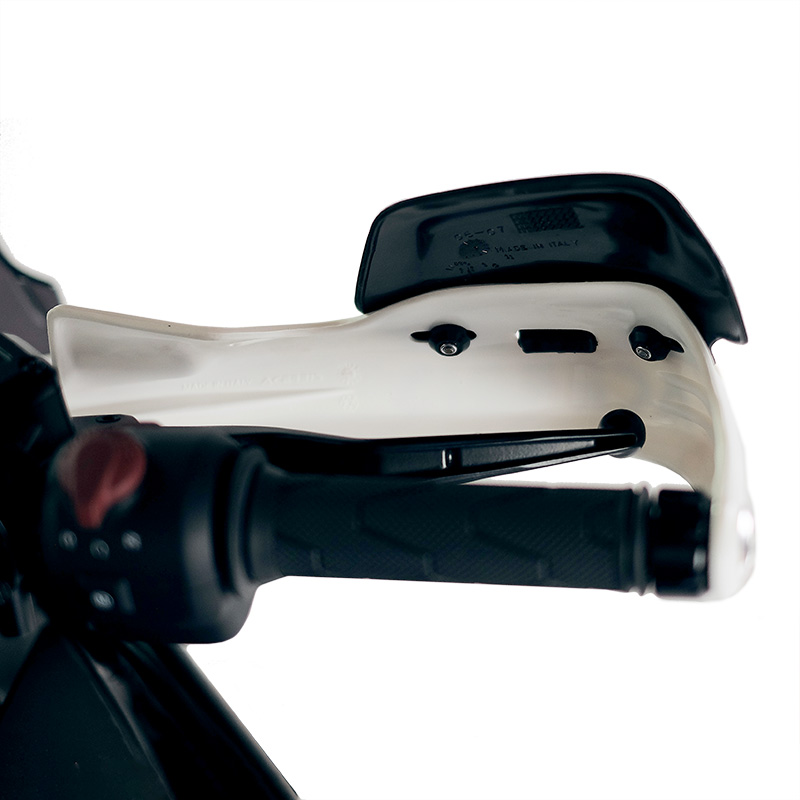 经典的拉力赛护手和防腐蚀手镯用于将护手固定在车把上,配有专用支架。