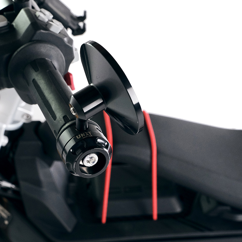 在套件中,您会发现两个配有螺钉的铝制端子和两个镜子。后视镜直径 72 毫米 为了正确、安全地组装:在后视镜就位的情况下拧紧螺钉,进行道路测试,然后再次拧紧螺钉。