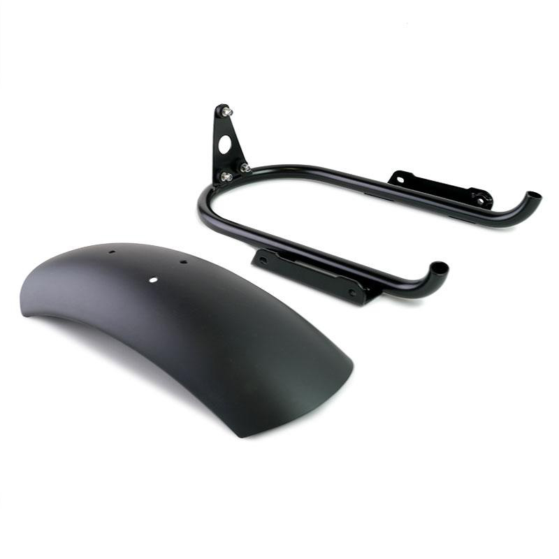 它以完美的“老派”风格取代了所有原始的前挡泥板。它配备了一根钢管,用于固定在叉腿上,表面采用亚光黑色环氧树脂粉末。配有哑光黑色饰面的铝制前挡泥板。